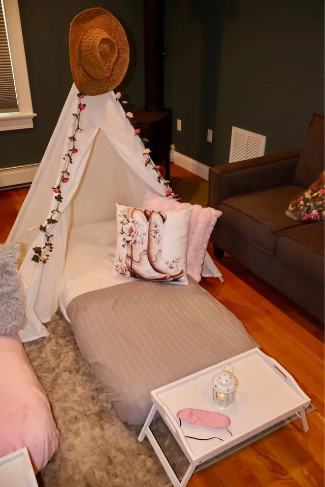 Transform your child’s sleepover into an unforgettable night with our beautiful themed teepee tents and cozy bedding. Whether it’s a birthday party, celebration or just a fun night with friends, make it memorable.